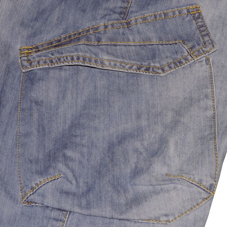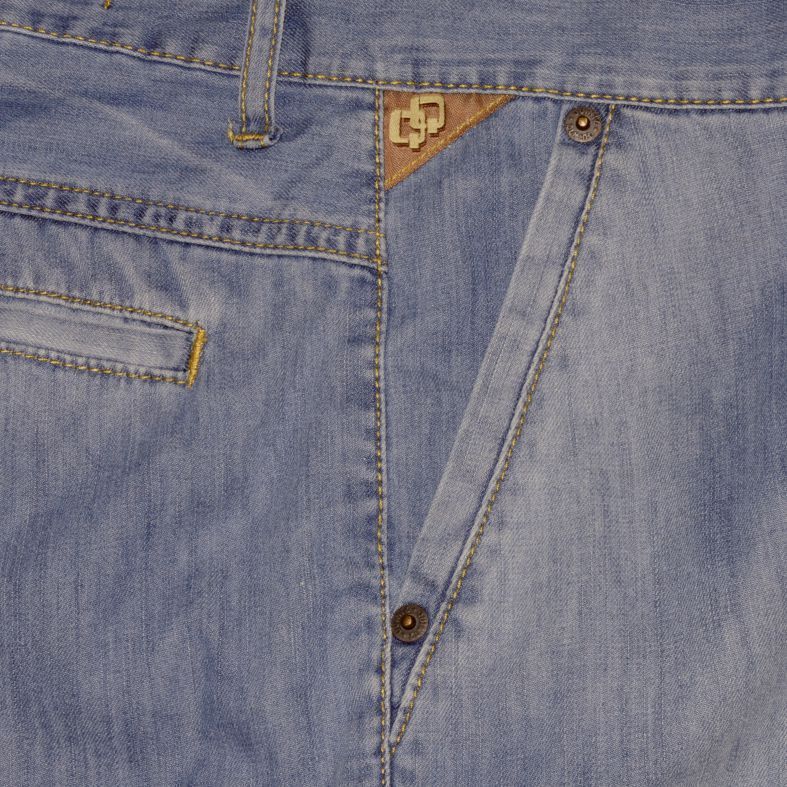 Nem maradhat el nyár a Quintz háza táján különleges, innovatív kialakítású oldalzsebes farmer rövidnadrágok nélkül. Alapanyaga kiváló minőségű, Olaszországból származó, szálkoptatott szövésű 100% pamut összetételű farmeranyag. Fazonja kissé emelt derekú, hagyományos szárú bermudanadrág. Igazi különlegességét a zsebei adják; elöl svéd-zsebes (a képekkel ellentétben az 54,56,58-as méretek szegecsek nélkül készültek), az oldalt lévők tépőzáras zsebfedővel, a két hátsó pedig egyszegélyes bevágással készült. Középkék színét elöl és hátul is világos koptatás teszi hangsúlyossá. Sárga tűzésű és cipzáros záródású.