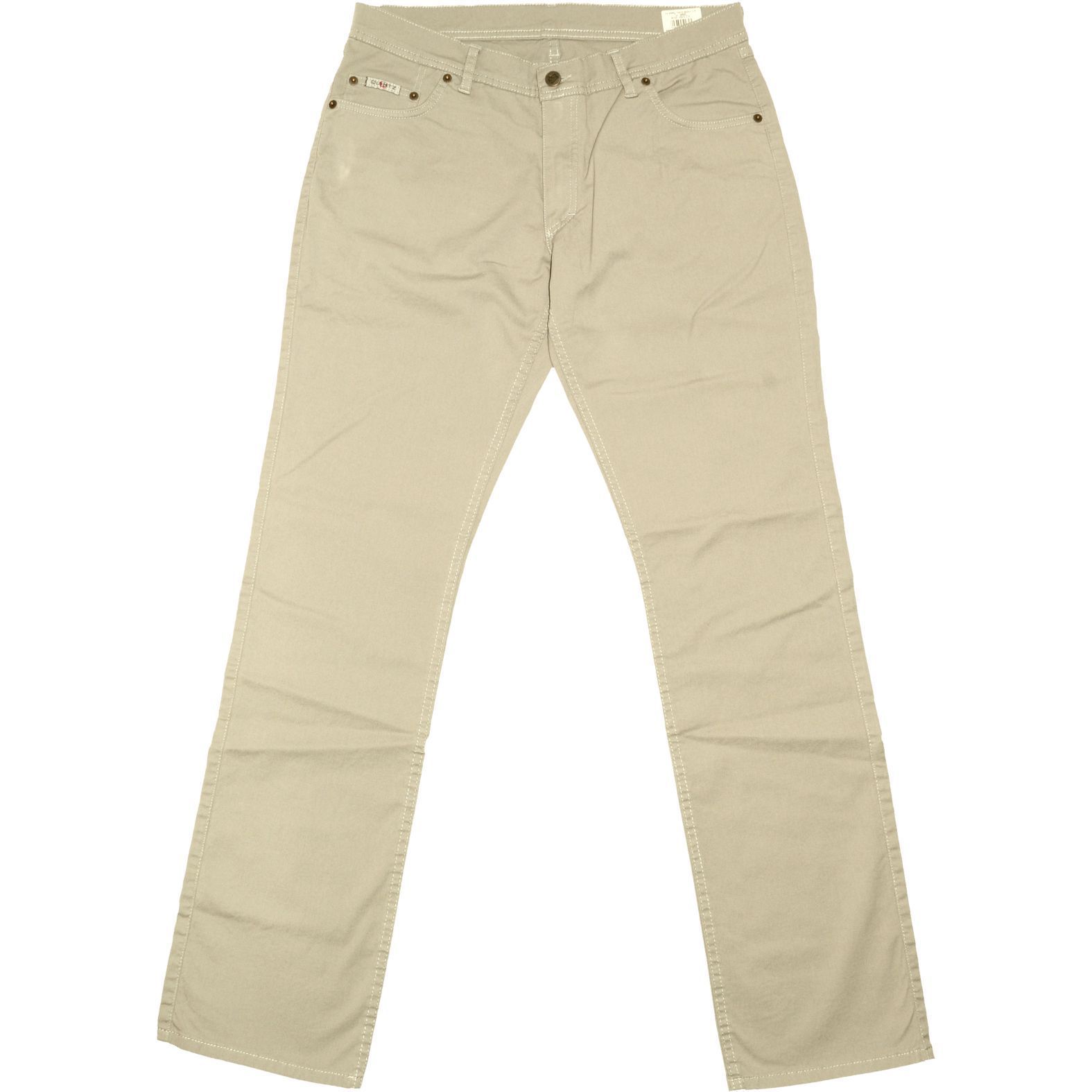 A tökéletes nyári nadrág! Rendkívül jó minőségű alapanyaga 97% pamutból és 3% elasztánból készült, emiatt hihetetlenül puha és rugalmas egyszerre. Szövésének különlegessége, hogy ugyanolyan technikával készült, mint a farmerek (azaz sávoly szövéssel). Szabására jellemző a kissé emelt derékrész és az egyenes szárak. Mindhárom alapszíne jól variálható bármely összeállítással. Bármilyen alkalomra tökéletes társ; akár egy zakóval, akár egy sportos pólóval egyaránt. Hagyományos férfi farmer fazon, ötzsebes, cipzáros, tűzésének árnyalata megegyezik az alapanyagéval.