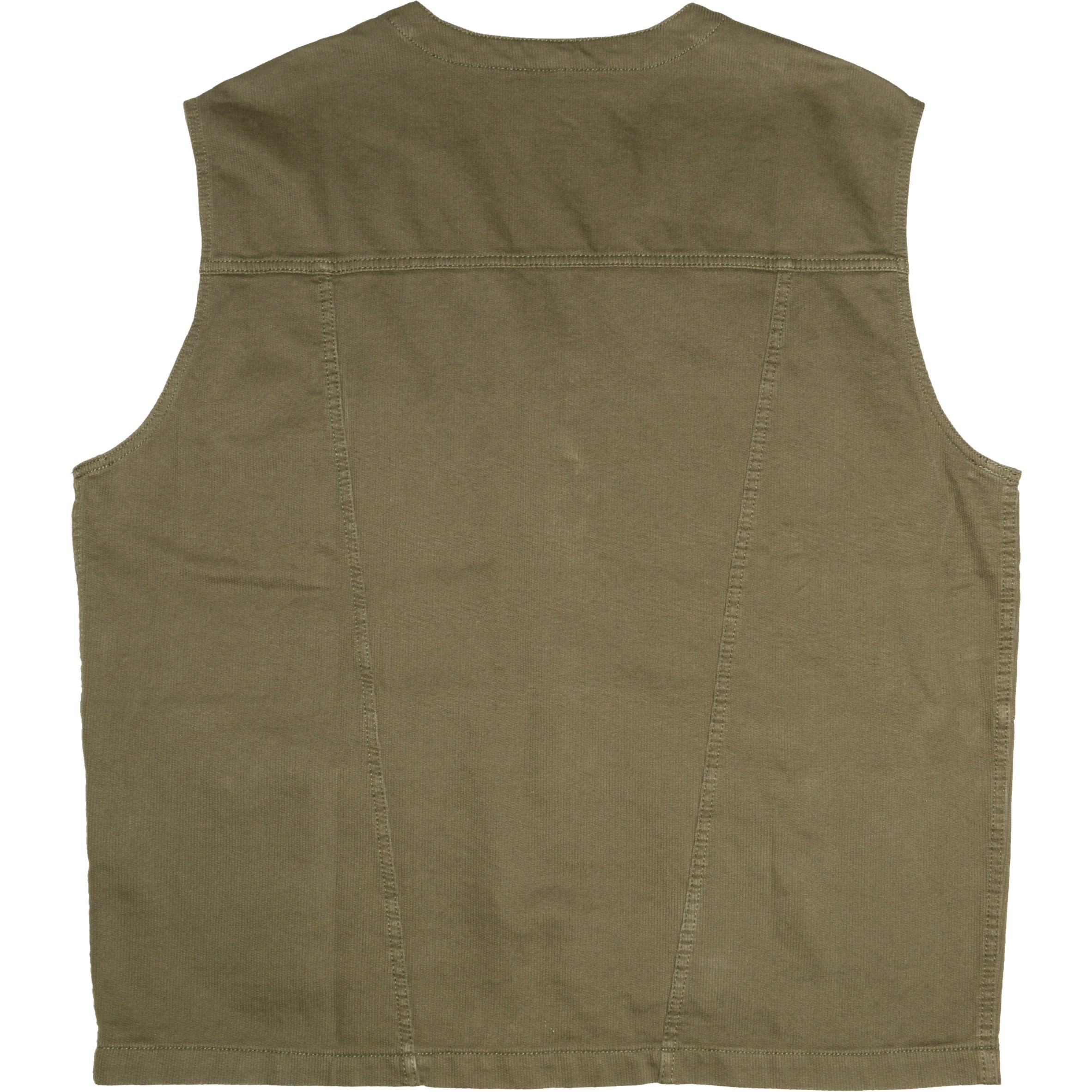 Piké szövésű, valódi pamutból készült férfi farmermellény. Mi az a "Piké"? Egy masszív, strapabíró alapanyag, aminek a különlegessége az, hogy egyik oldala mikró-bordás szövésű (ez van kívül), a másik oldala pedig enyhén bolyhozott. A végeredmény pedig egy kívül ellenálló, belül kényelmes, puha és a testhőt jól elvezető ruhadarab. A mellény szabásmintája a klasszikus Quintz modellt követi, azaz gallér nélküli, négyzsebes kivitelezés, amelyekből három zsebfedővel, gombolással zárható, a jobb felső pedig ketté osztott.
