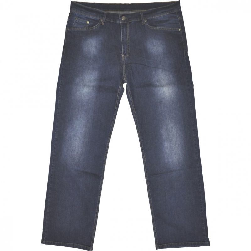 Szál-koptatott, sztreccses alapanyagú (67% pamut, 3% lycra, 30% poliészter) férfi farmernadrág. Ajánljuk mindazoknak, akik egy kényelmes, könnyű, sportos viseletet szeretnének. Klasszikus jeans kinézetű, enyhén koptatott modell. Ötzsebes, amelyek elöl szegecsekkel erősítettek. Enyhén magasított derékkal és egyenes szárral készült. Cipzáros záródású.