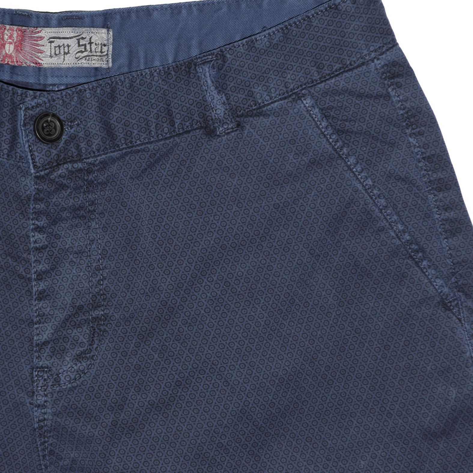 Különleges mintázatú, sztreccs farmerbermuda.