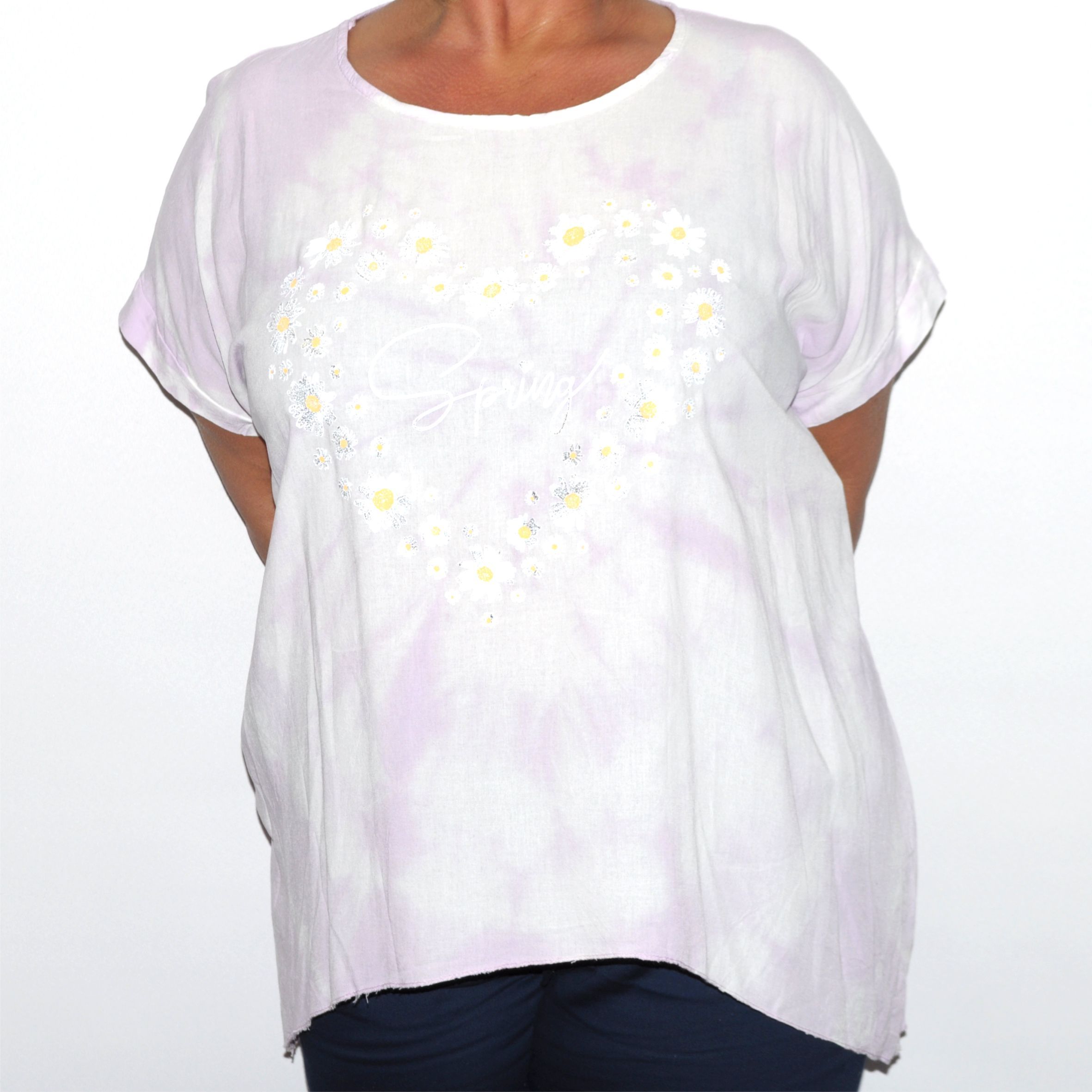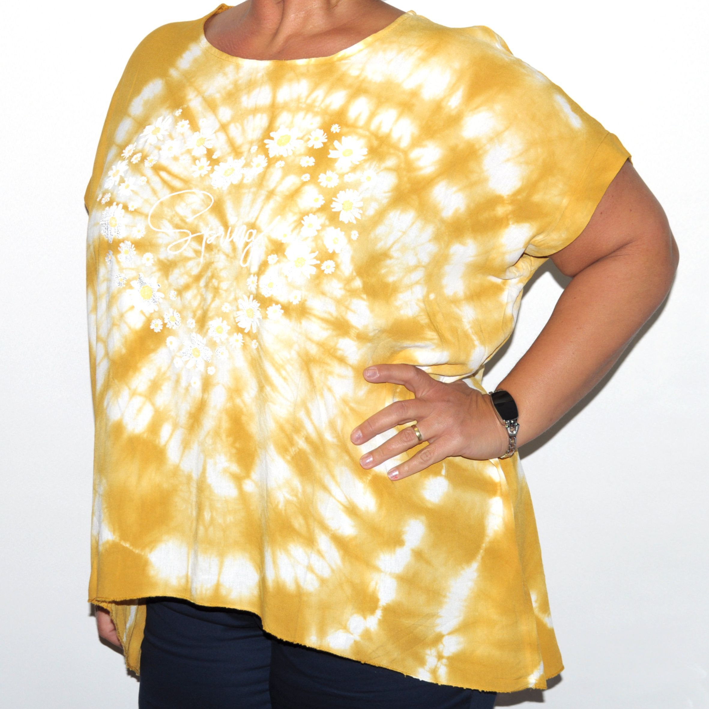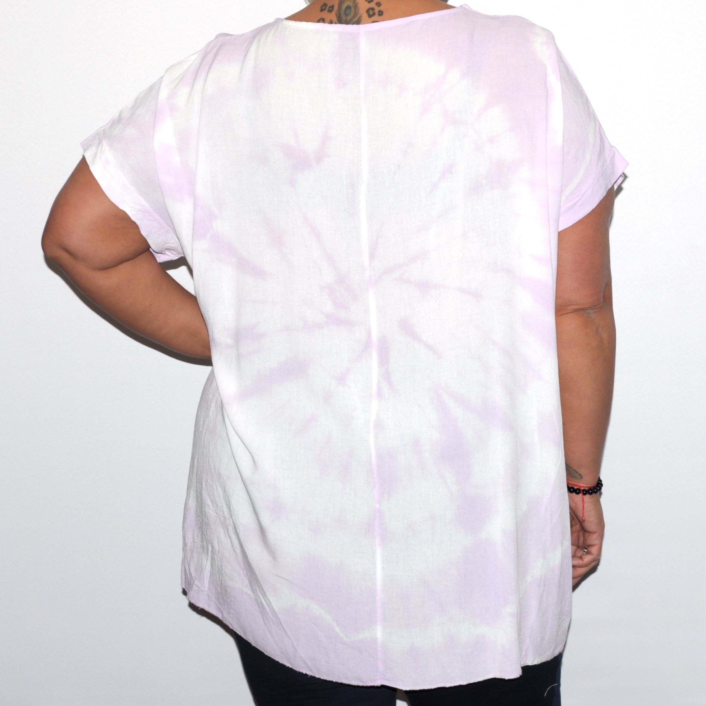 Különleges batikolással készült, bő fazonú női felső.
