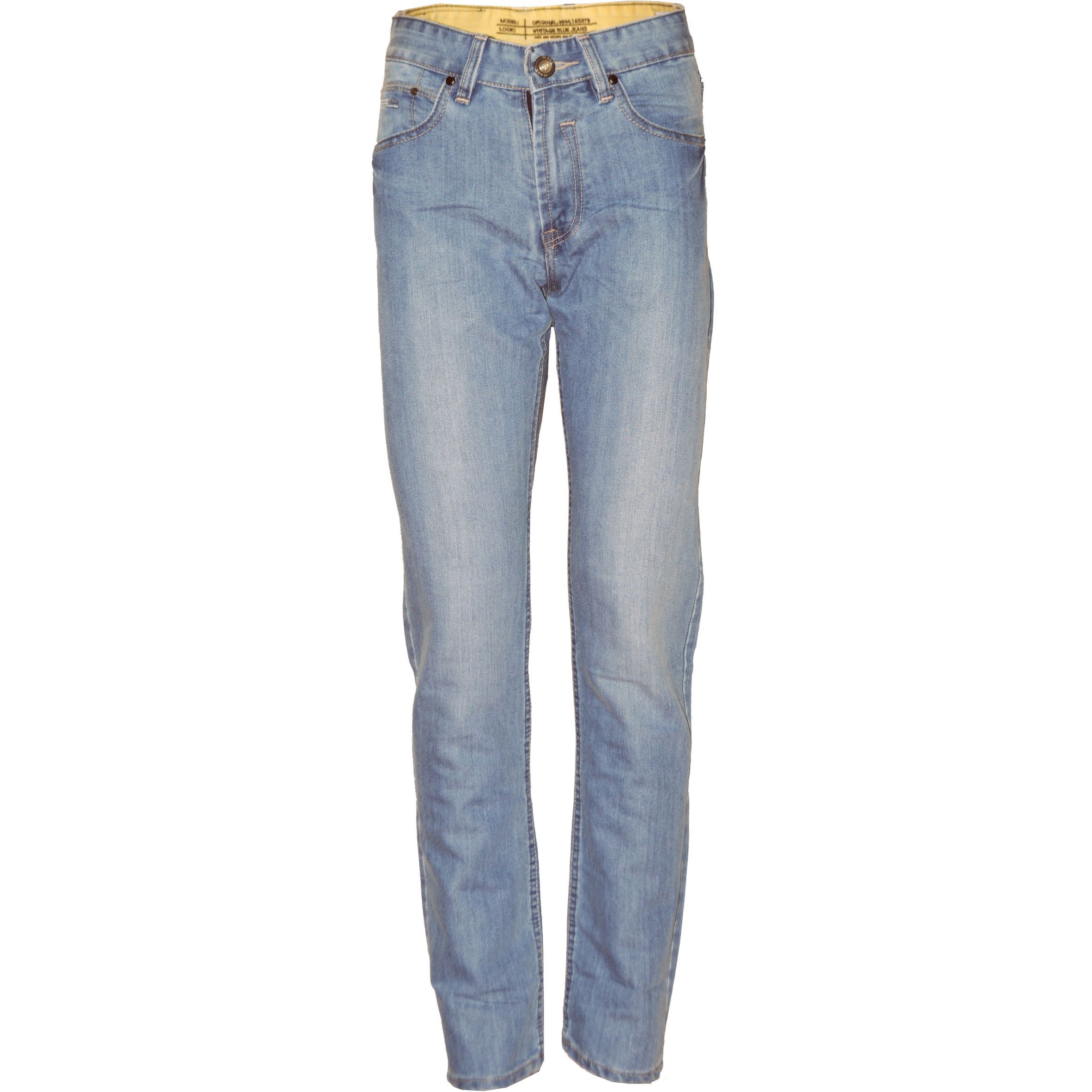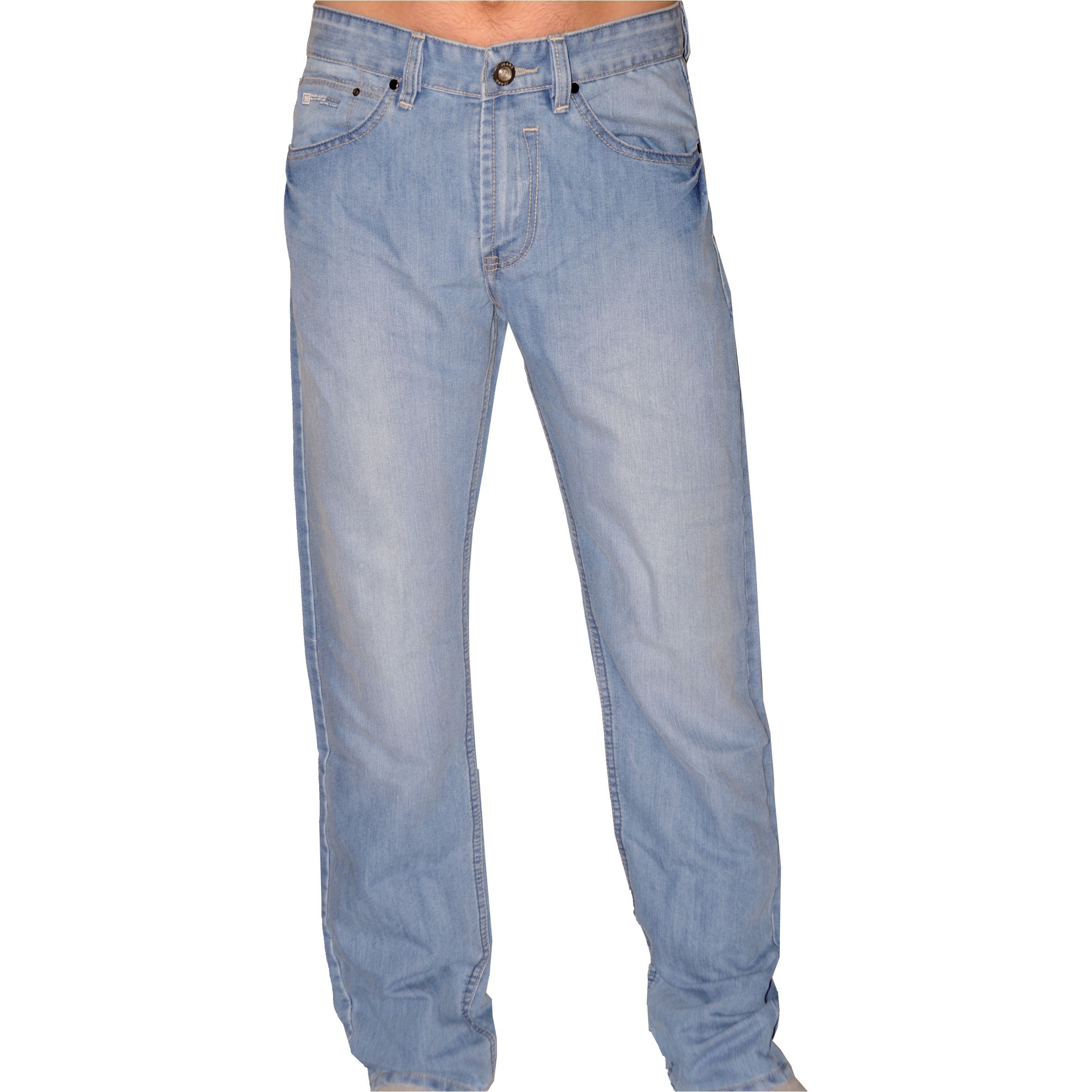 Világoskék árnyalatú, hagyományos fazonú férfi farmernadrág. Aprólékosan kidolgozott, egyedi megoldásokban bővelkedő modell, amely mégis megőrizte a klasszikus, minimalista összképét. Inkább csak közelről tűnik fel a részletgazdagsága: a világosszürke tűzése, a derekánál belül elhelyezett diszkrét, trendi hímzése, a néhány apró nyomat, a ritkaságszámba menő szegecselés, vagy a zsebek szabása, elhelyezkedése.