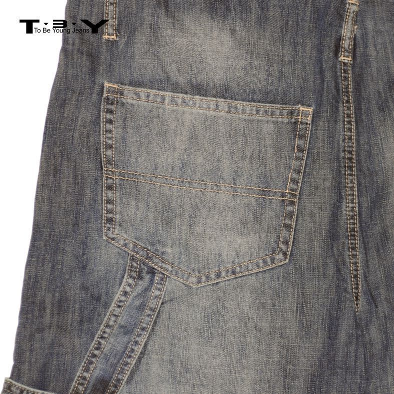Kényelmes és divatos uniszex kertésznadrág. Kényelmes, mivel bő szárai nem gátolják a mozgást, pántjai pedig mindig a helyén tartják a kissé bővített és emelt derékrészt. Trendiségéről szál-koptatott szövésű, tiszta pamut alapanyaga, valamint az elöl és hátul is megtalálható koptatása gondoskodik. Hétzsebes, amelyekből az első egy nagy méretű, oldalt svédzsebes, jobb szárán kettő kisebb, hátul pedig két, szintén nagy méretű található. Cipzáros záródású, drapp tűzésű kertész farmernadrág.