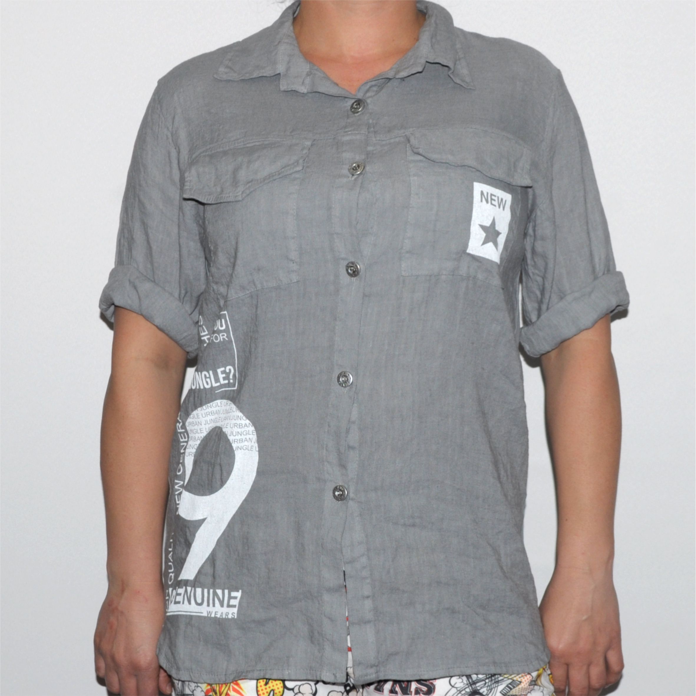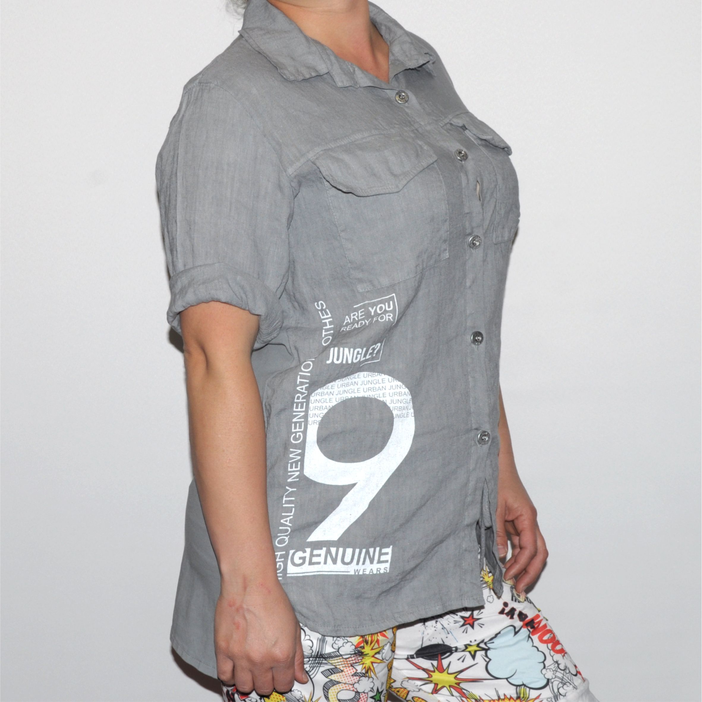 Különleges kialakítású női lenvászon-pamut ing.