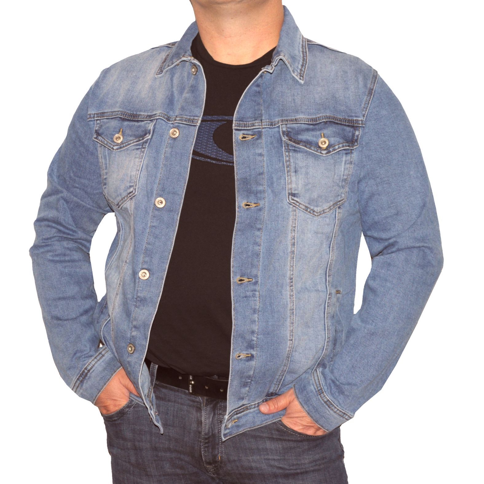 Különleges minőségű alapanyagból készült uniszex szabású farmerdzseki.