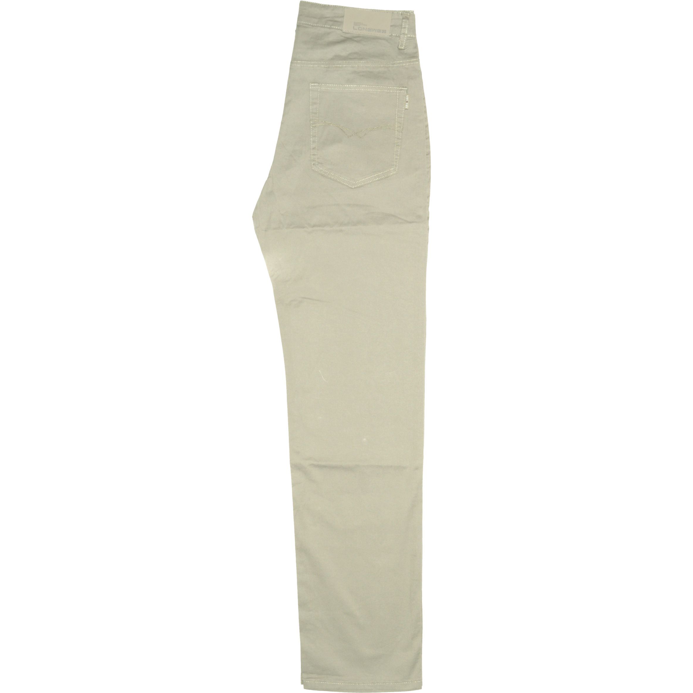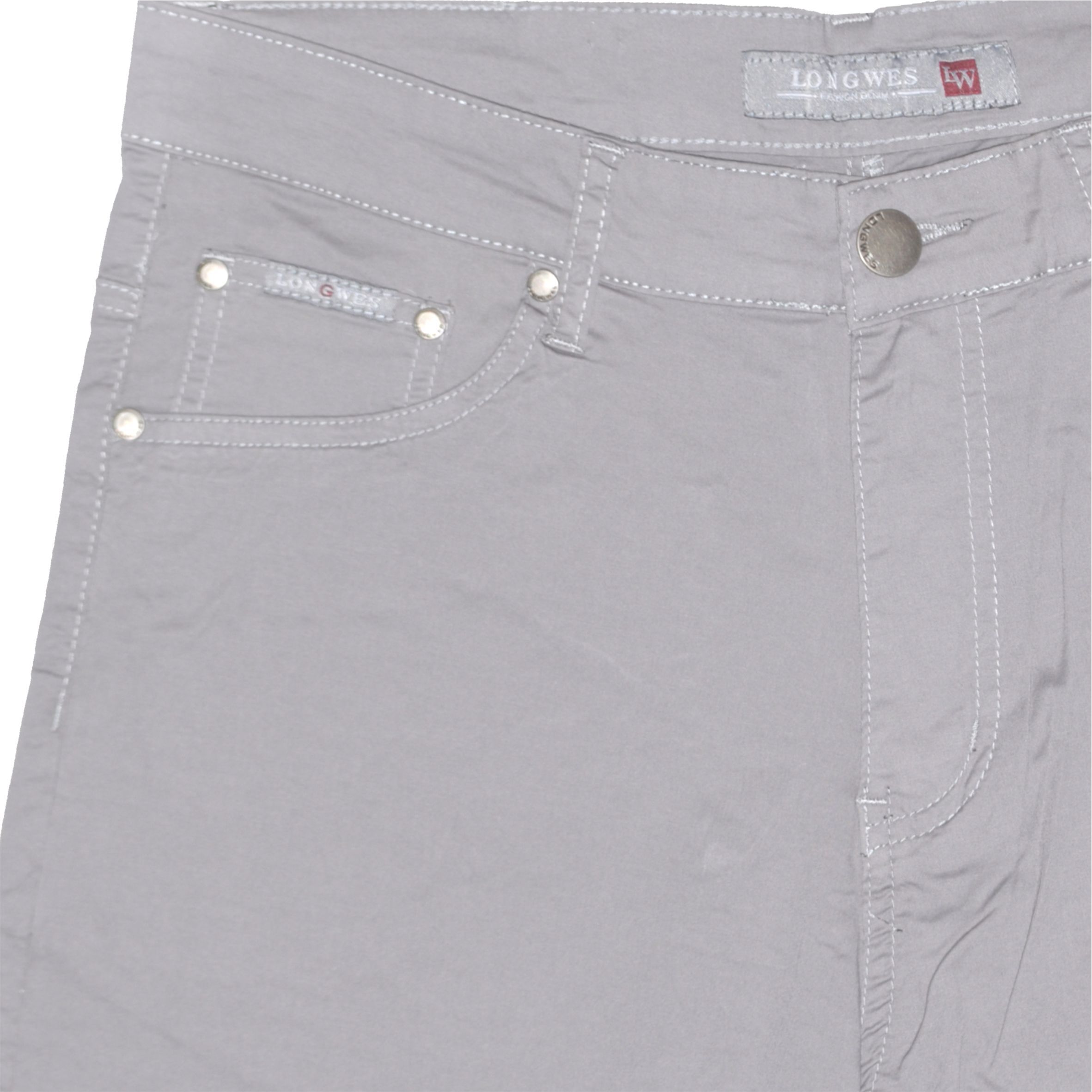 Ötzsebes "farmer" fazon, kissé emelt derékrésszel és leheletnyit szűkített szárakkal.
