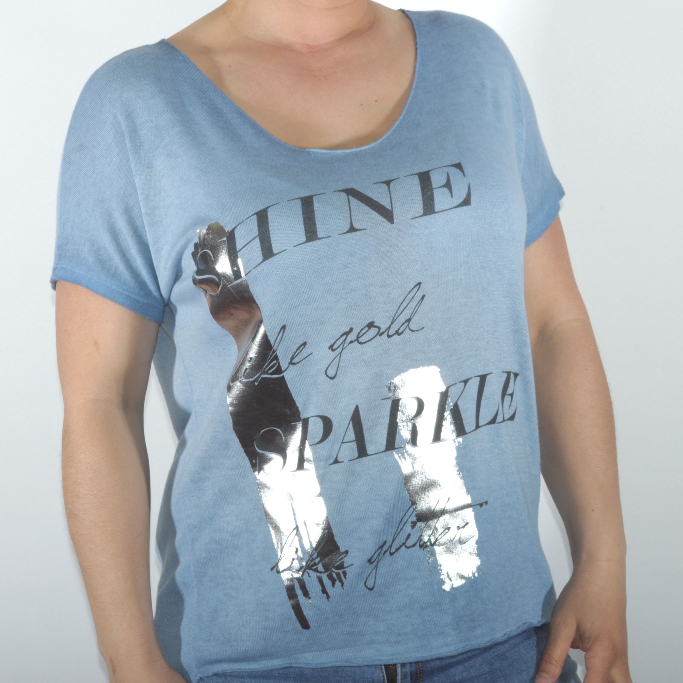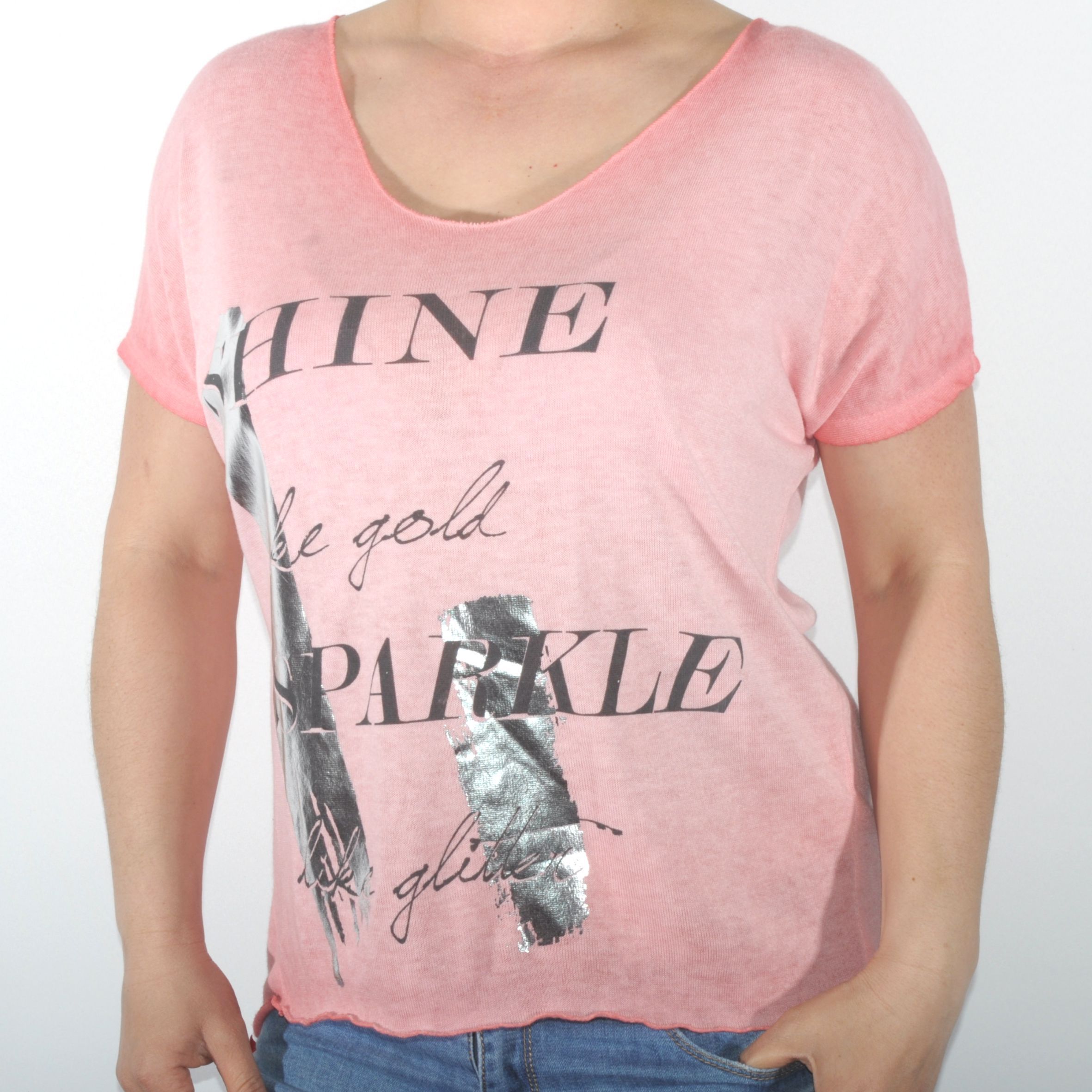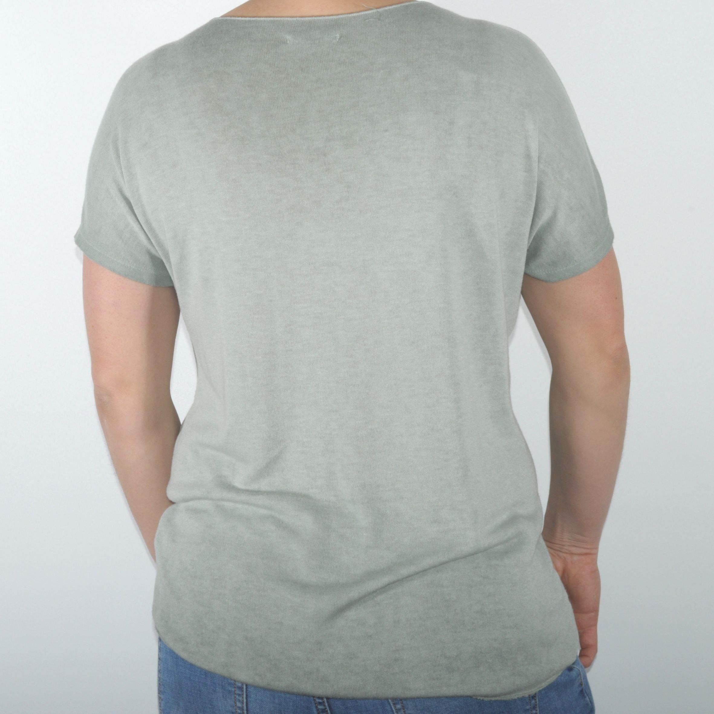 Pihekönnyű, vékony szálakból kötött, v-nyakú trendi női póló.