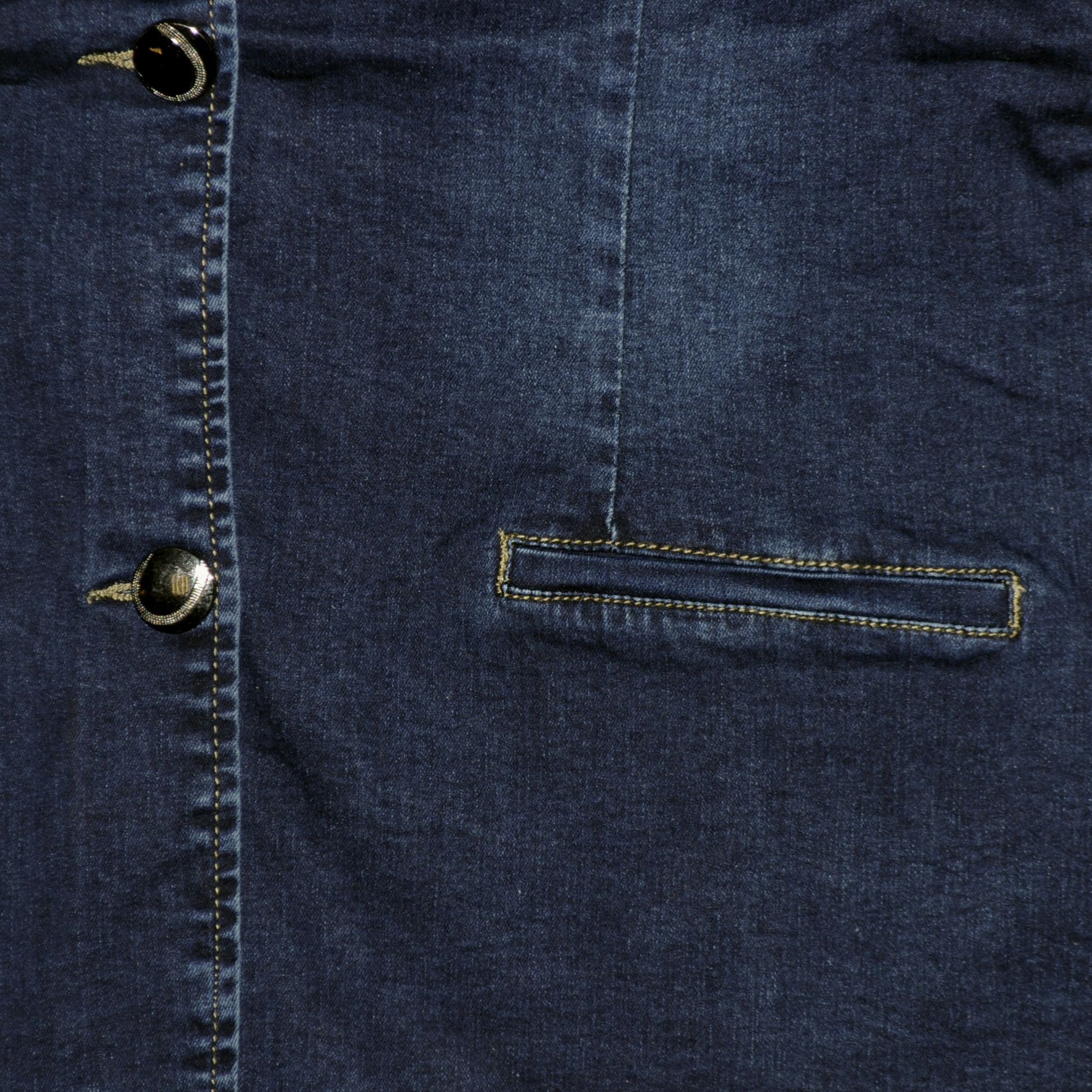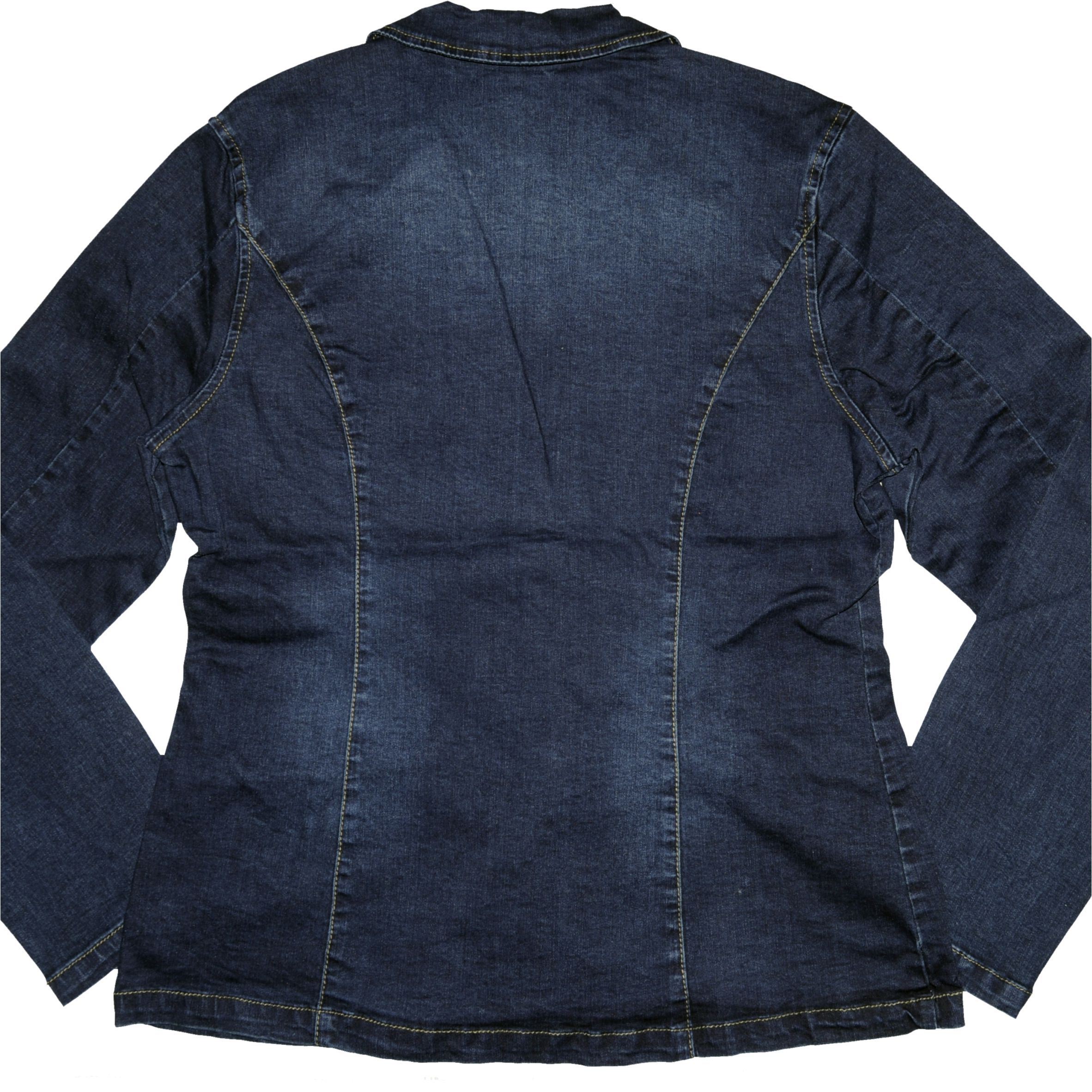 Hagyományos fazonú, női sztreccs farmerblézer.