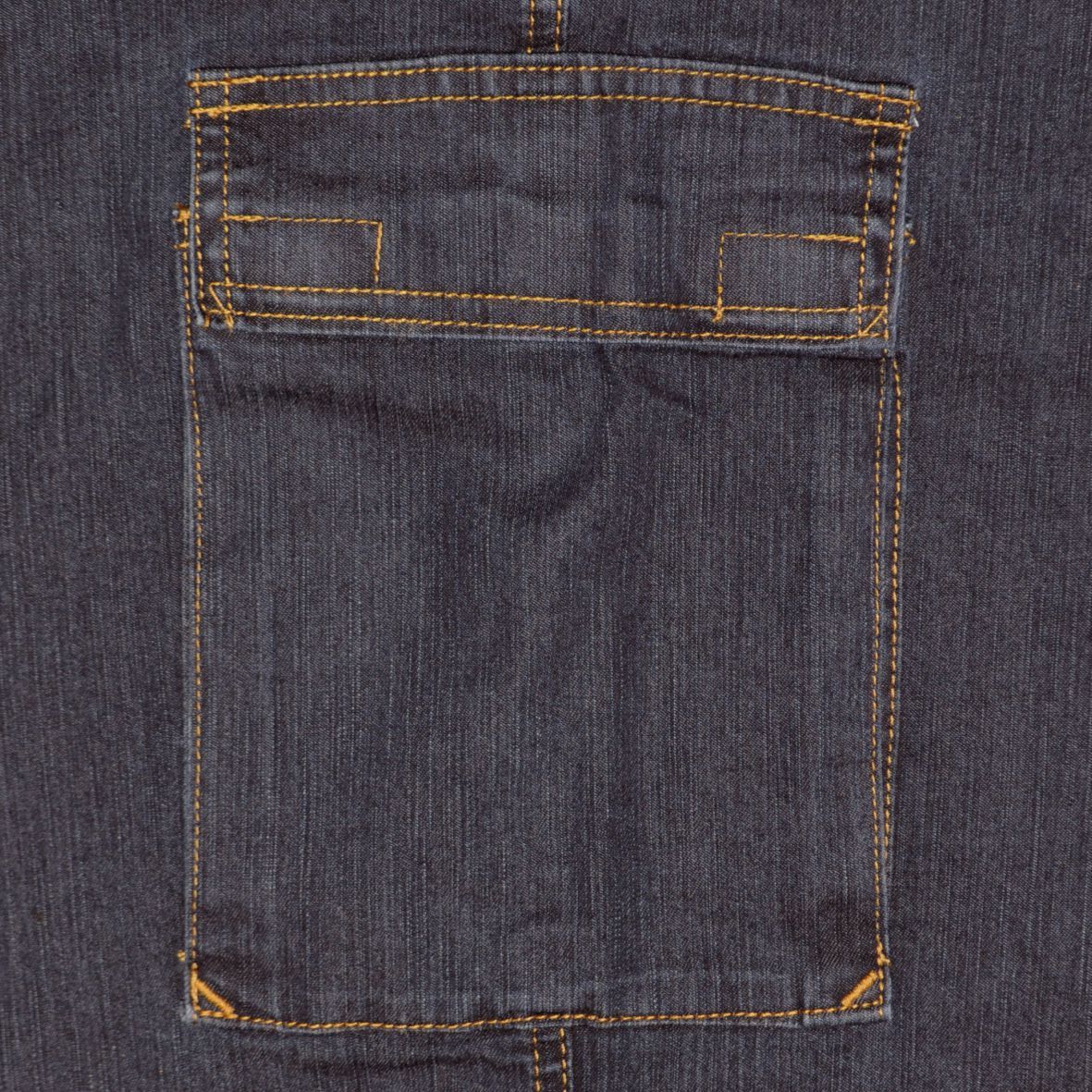Elsősorban a prémium kategóriás, tiszta pamutból készült, szálkoptatott szövésű alapanyagával tűnik ki ez a hagyományos fazonú, oldalzsebes farmer rövidnadrág. Enyhén bővített szárak és kissé emelt derékrész jellemzi, azaz tökéletesen megfelel egy klasszikus farmer nadrág alapjainak - rövidített változatban. Hossza - kívánság szerint - a tépőzárral záródó oldalzseb aljától egy centiméterre rövidíthető.