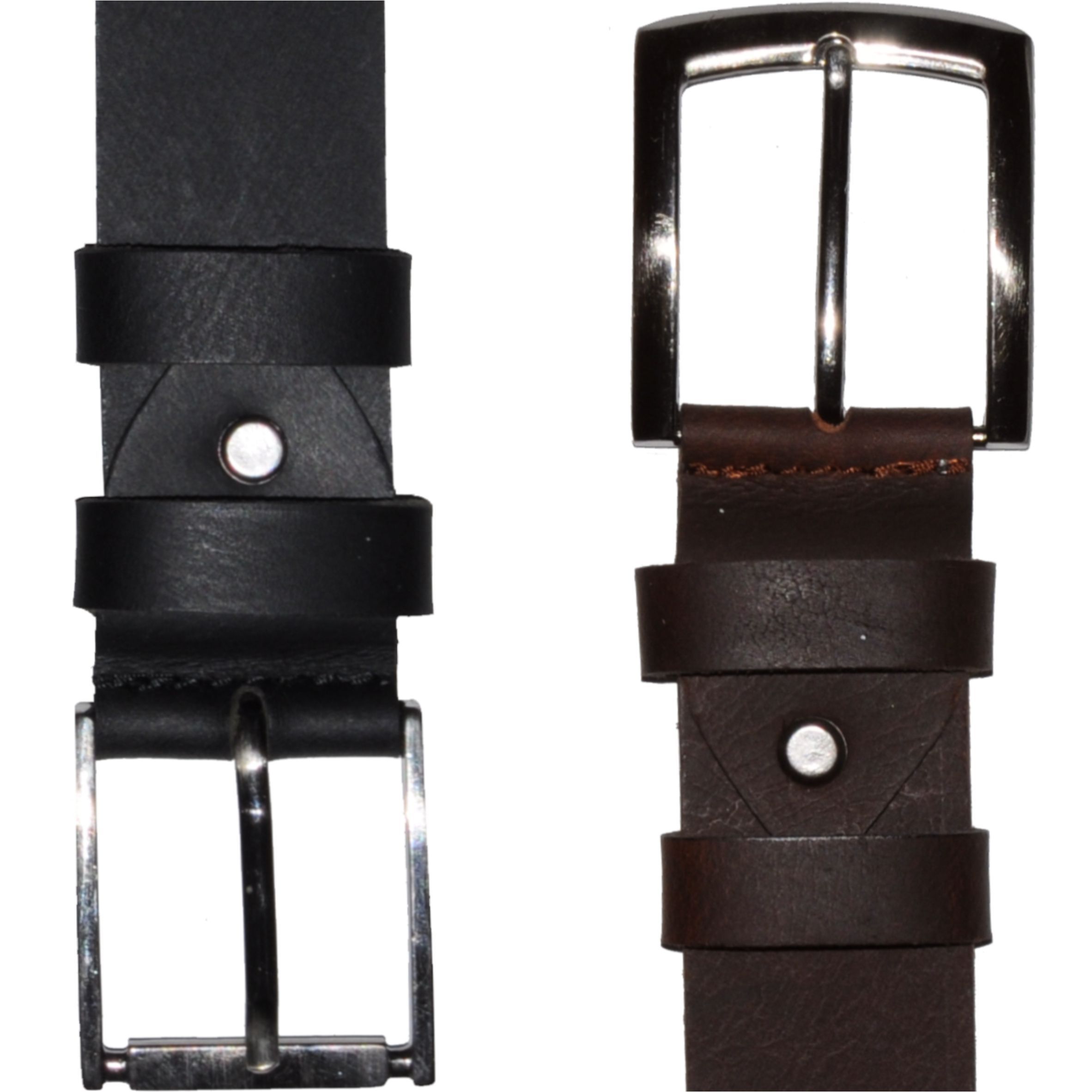 Minimalista stílusú bőr öv. A bújtatók is bőrből készültek, így azok fémet vagy egyéb díszítést nem tartalmaznak. Hossza praktikusan egy csavar eltávolításával pontosan méretre állítható.