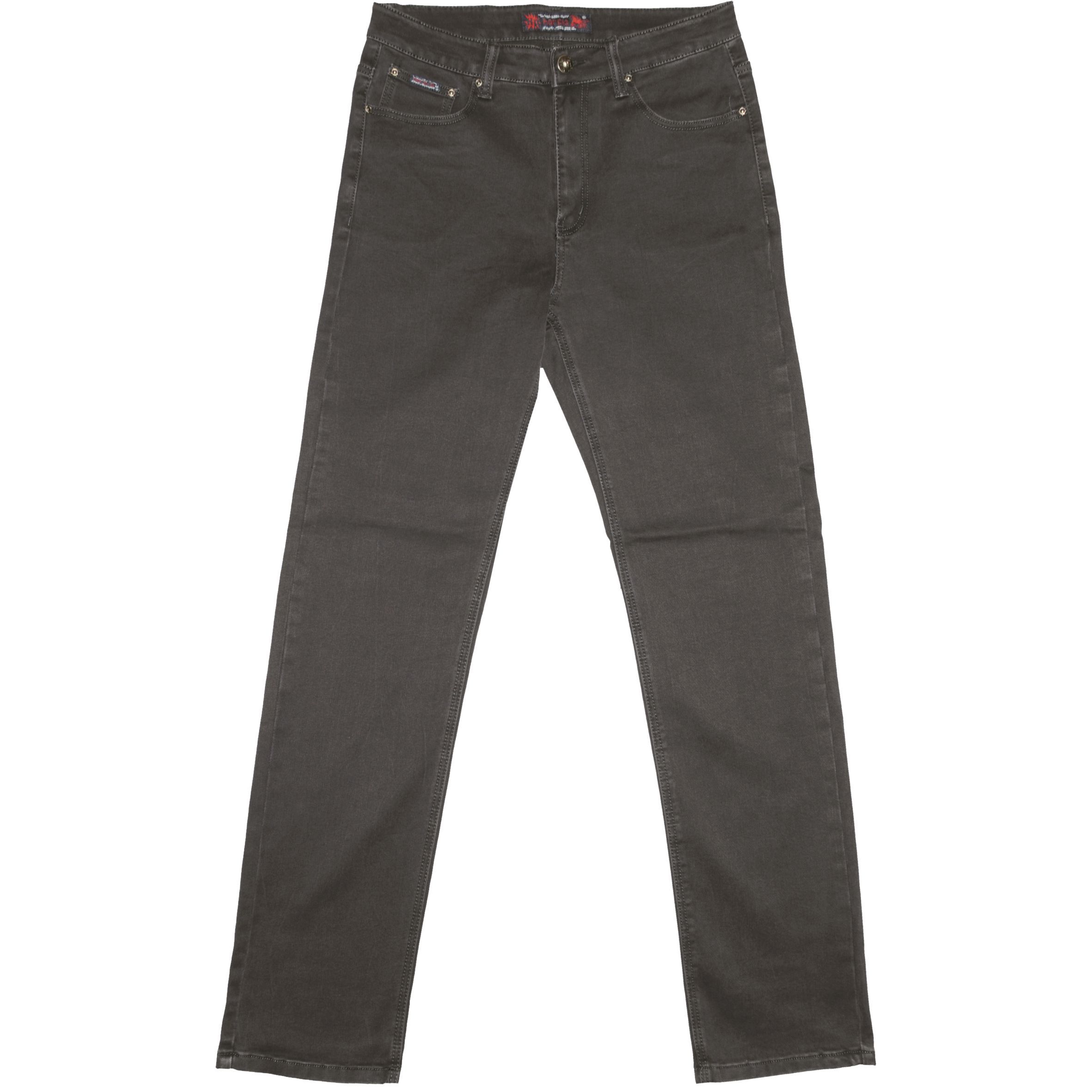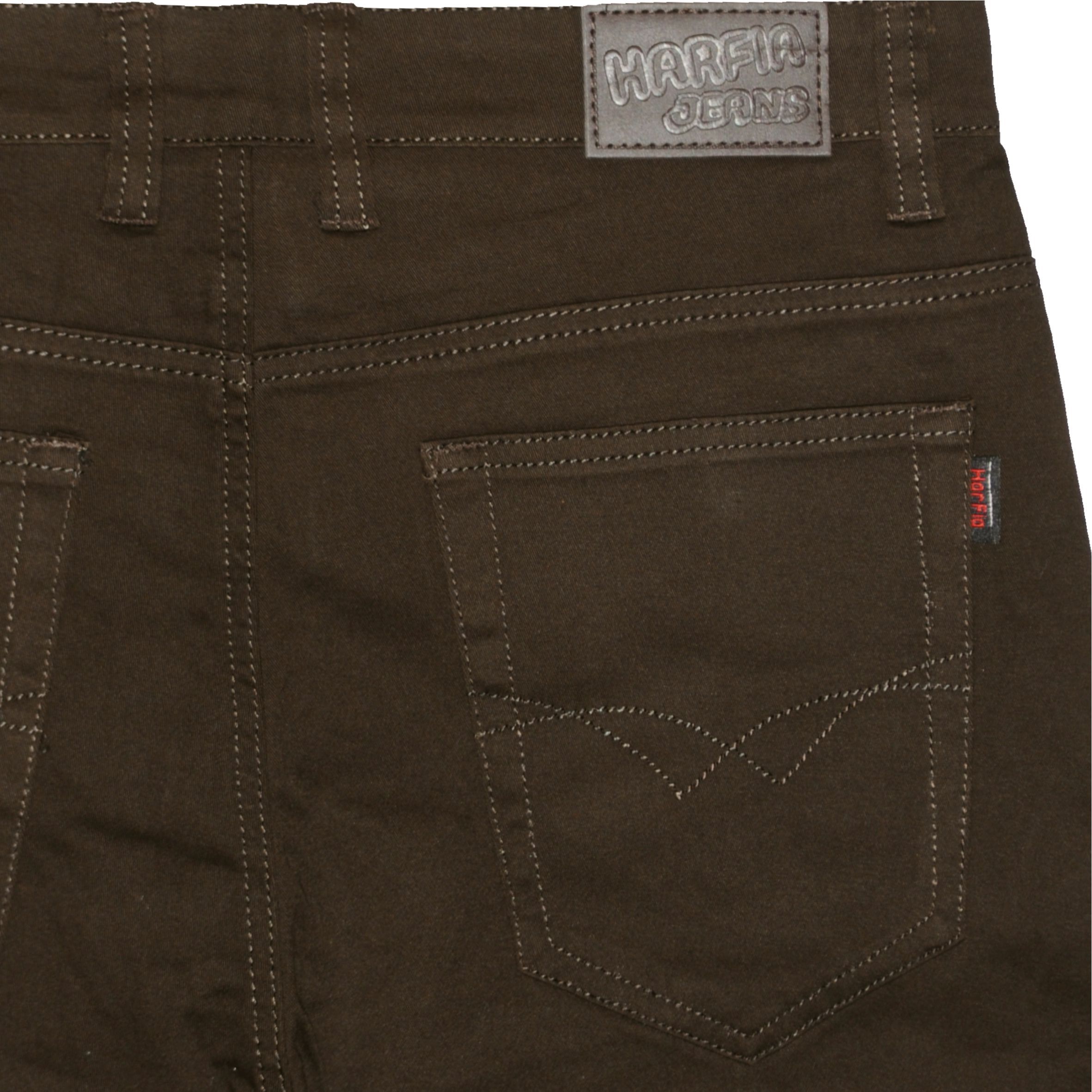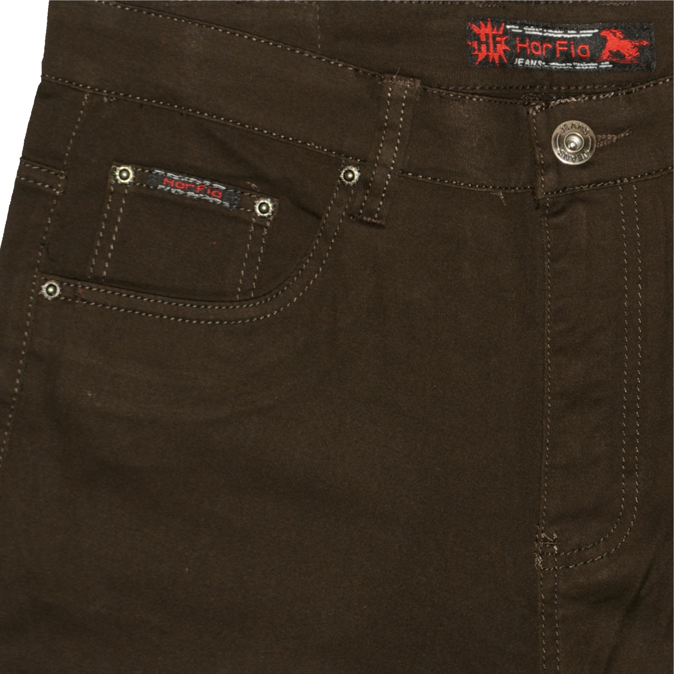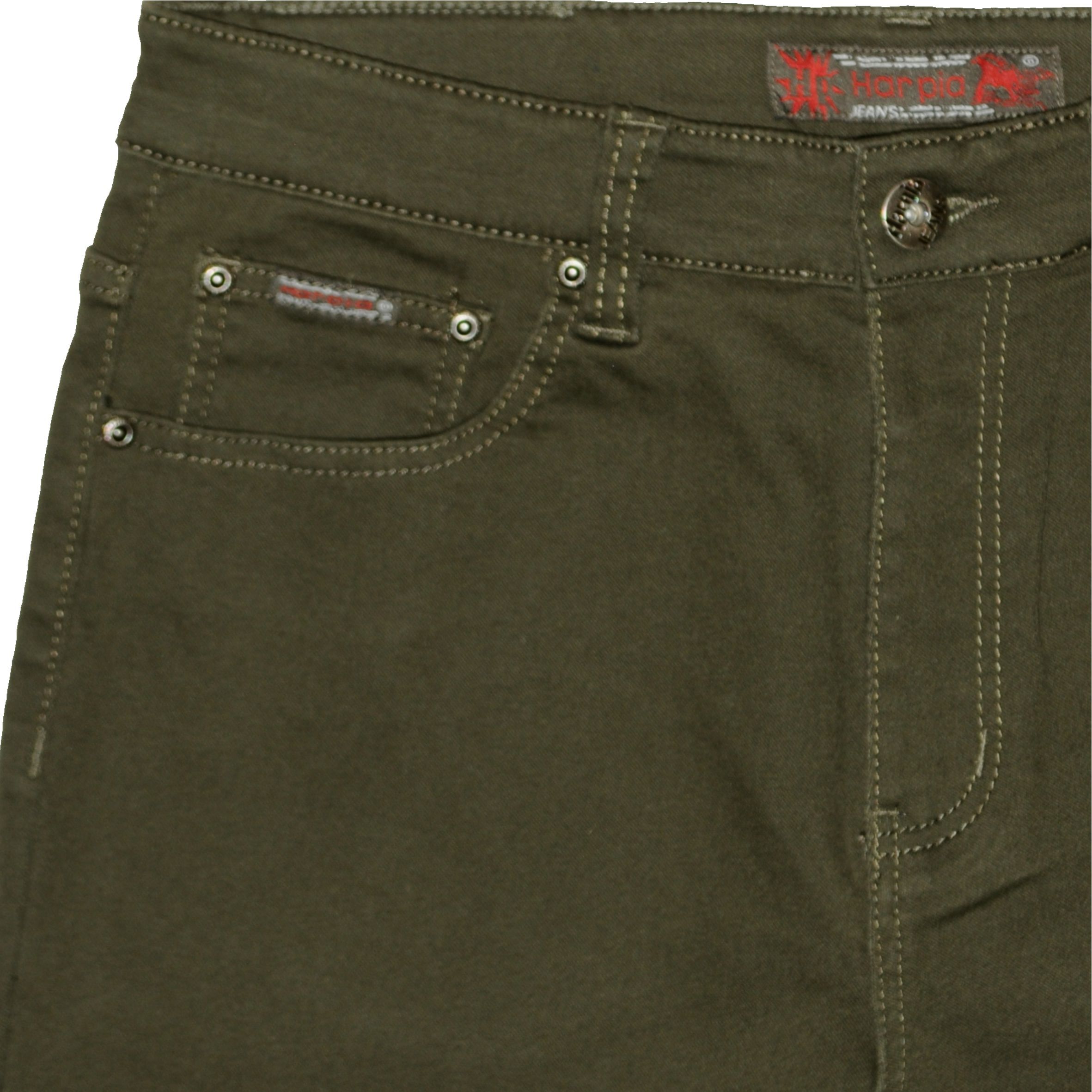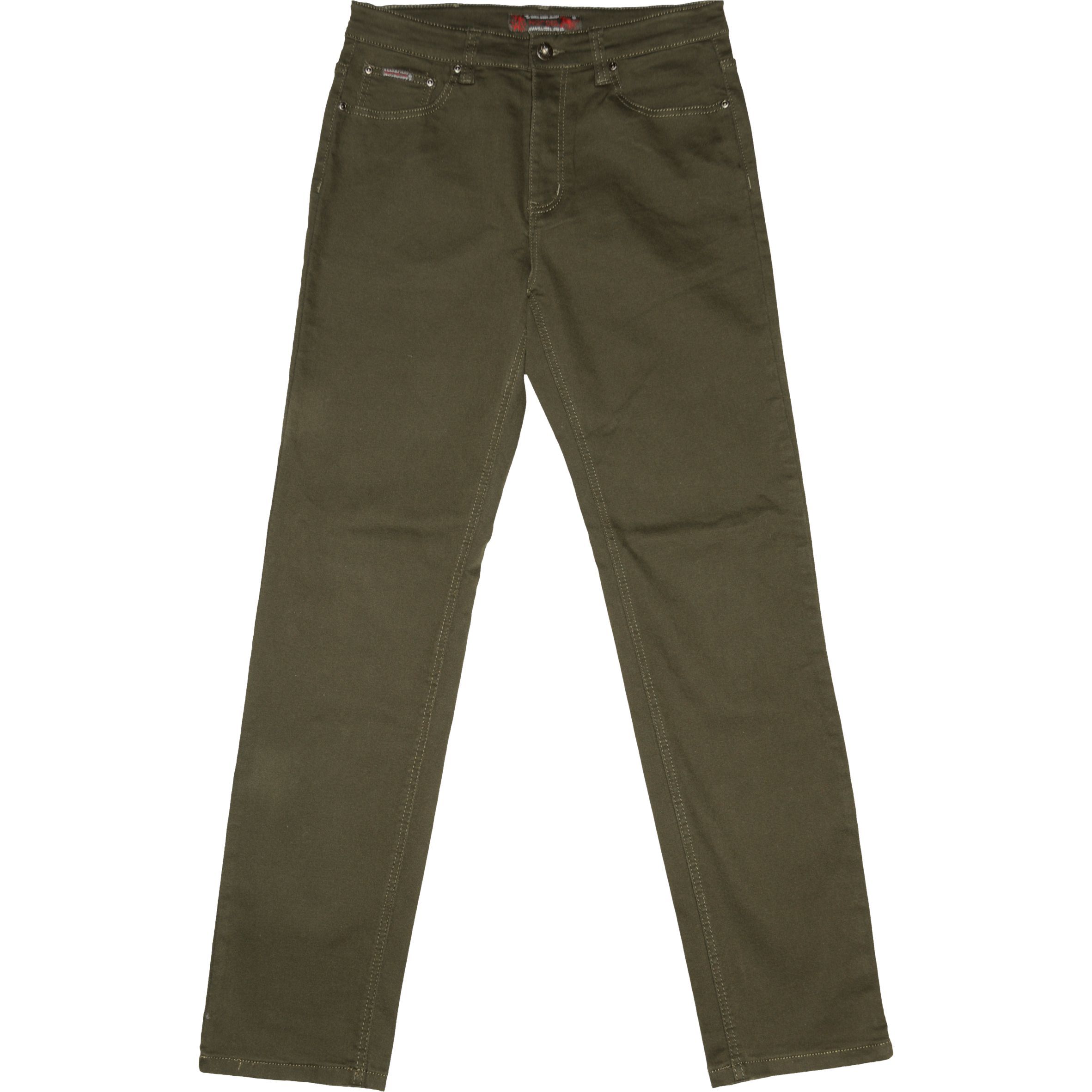 Hagyományos fazonú, hagyományos vastagságú színes sztreccses farmernadrág.