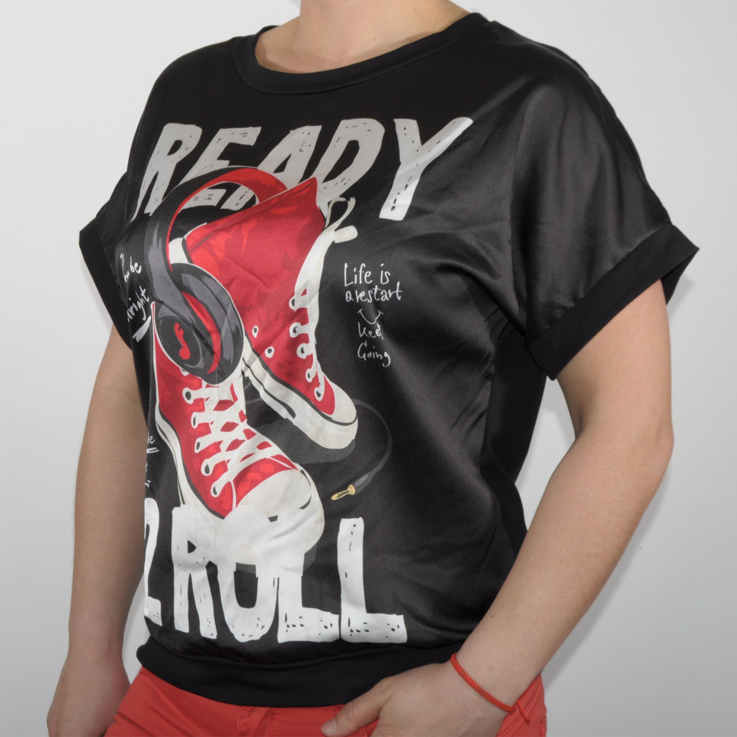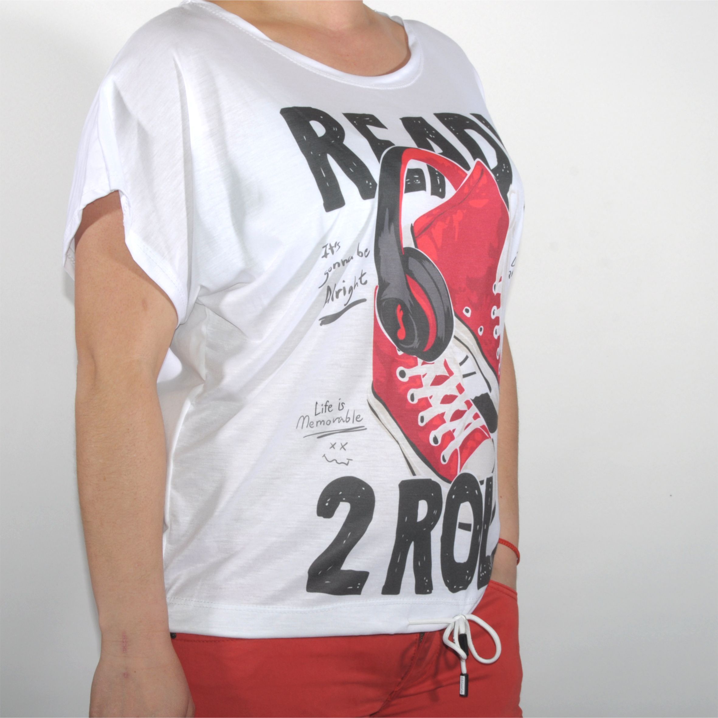 Különleges kialakítású női póló nem mindennapi mintával.