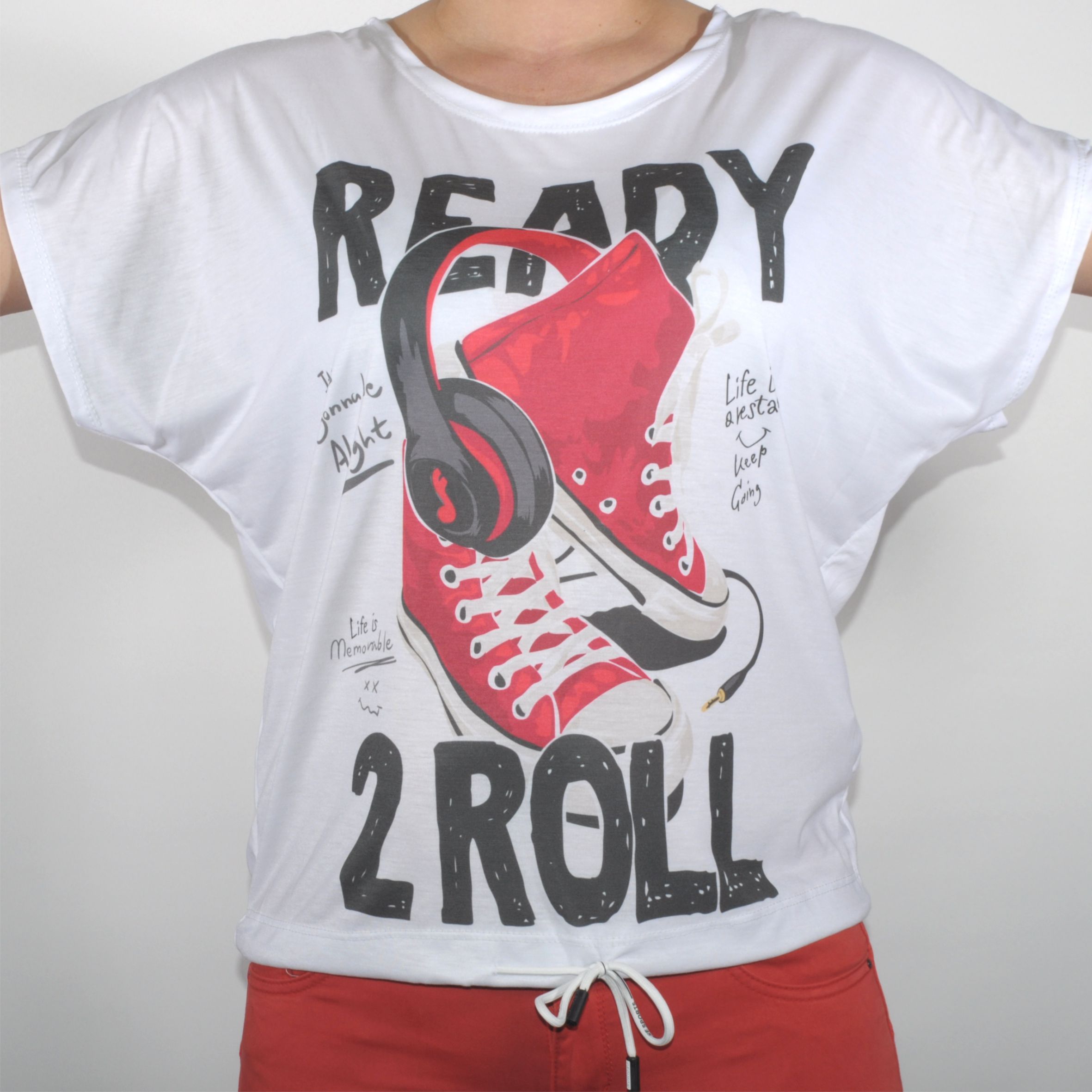 Kerek nyakú, a fehér színű alul zsinórral állítható.
