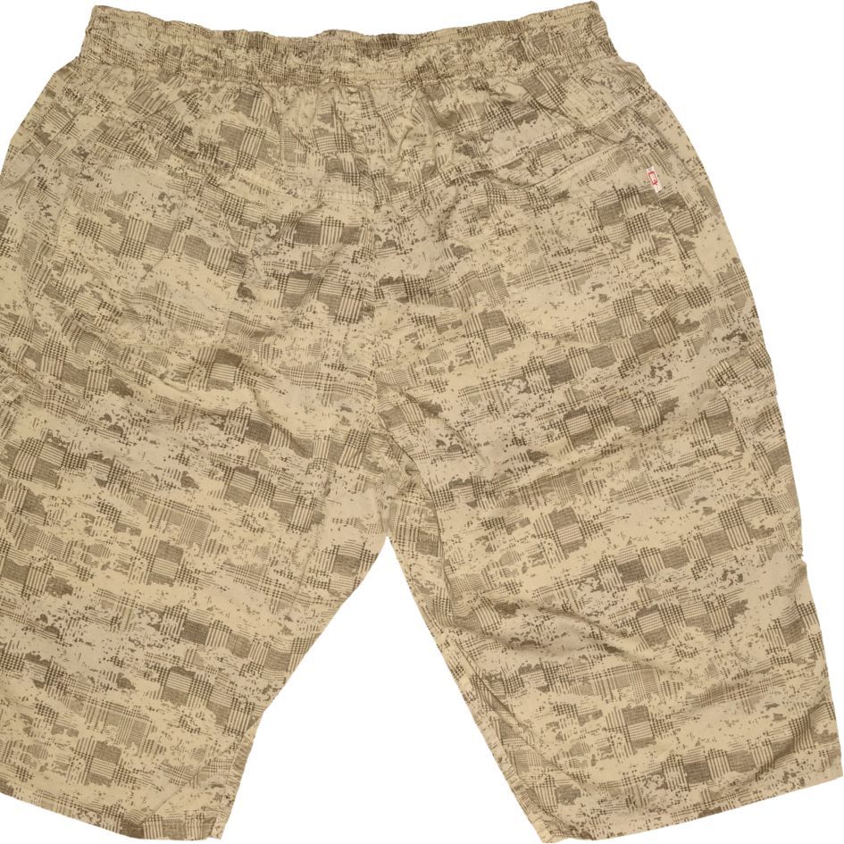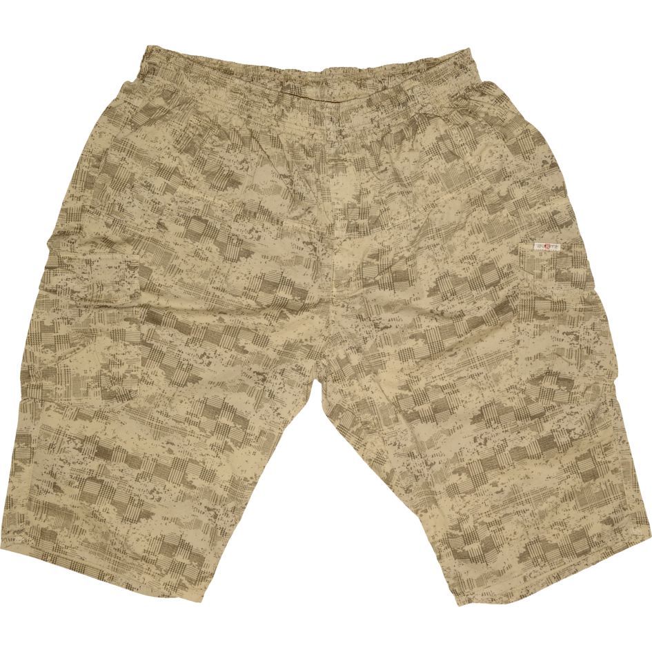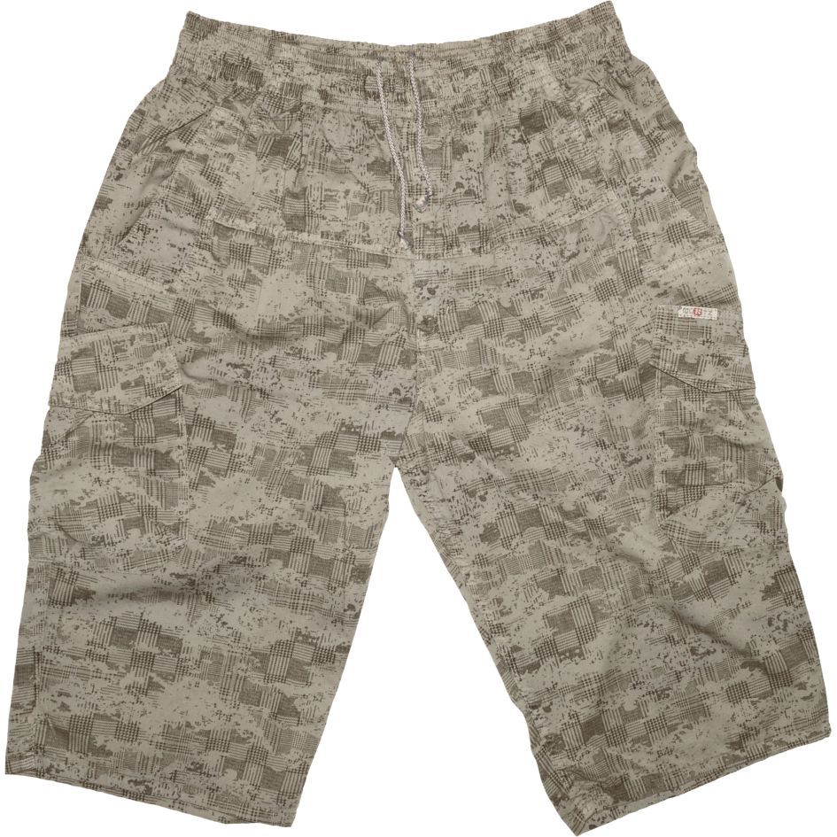 Különleges minőségű, pamut alapanyagból készült, nagy méretű gumírozott férfi rövidnadrág. Hatzsebes modell, amelyekből az oldalt lévők tépőzárral zárhatóak. Lezser, kényelmes, egyedi szabásvonala valamint a puha, szellős, mégis masszív természetes alapanyaga biztosítja a kényelmes érzetet az egész napos viselet során is. Ehhez még hozzájárul a gumírozott derékrész, valamint a cipzárral ellátott slicce is. Egyedi mintázata, kialakítása és színei pedig divatossá és jól variálhatóvá teszik.