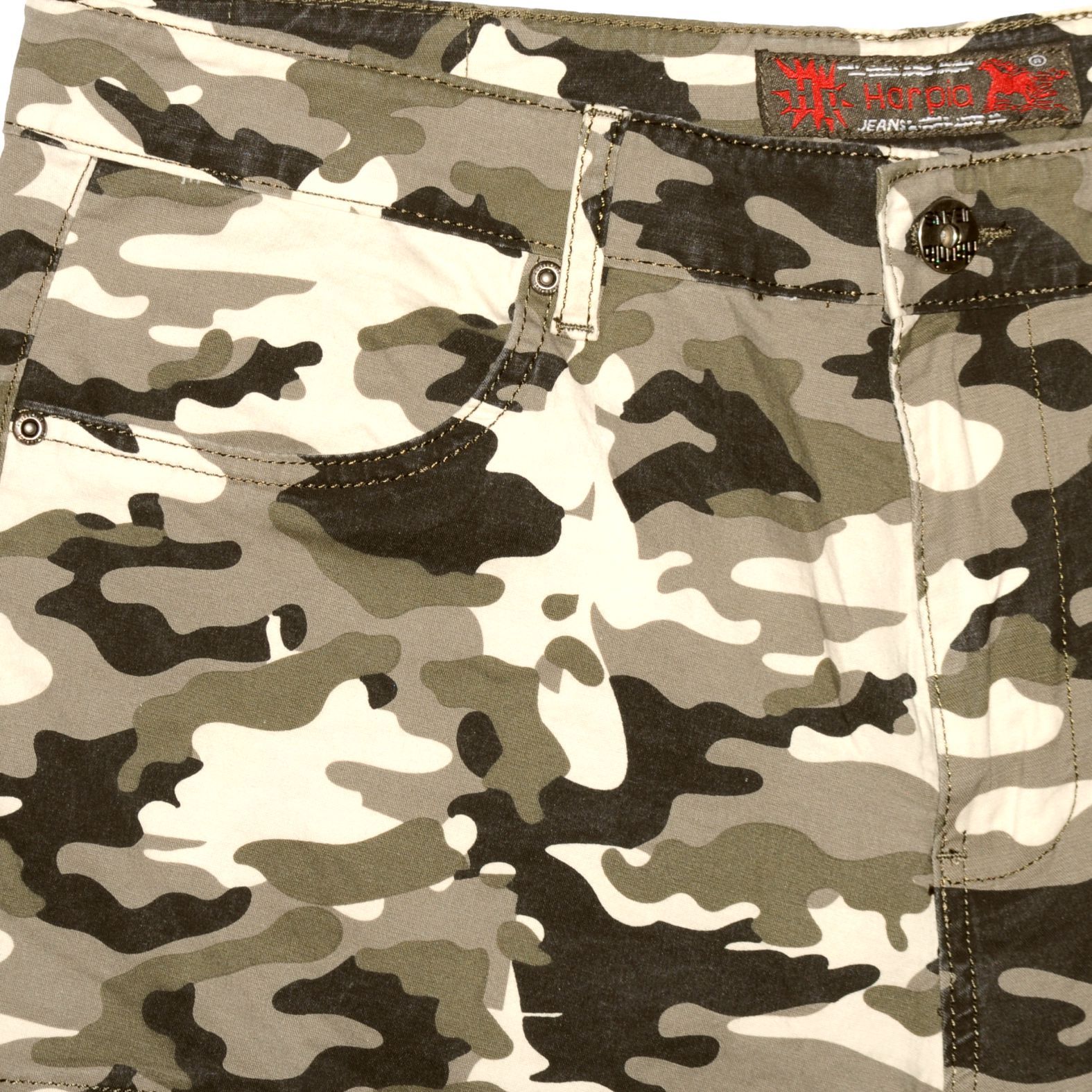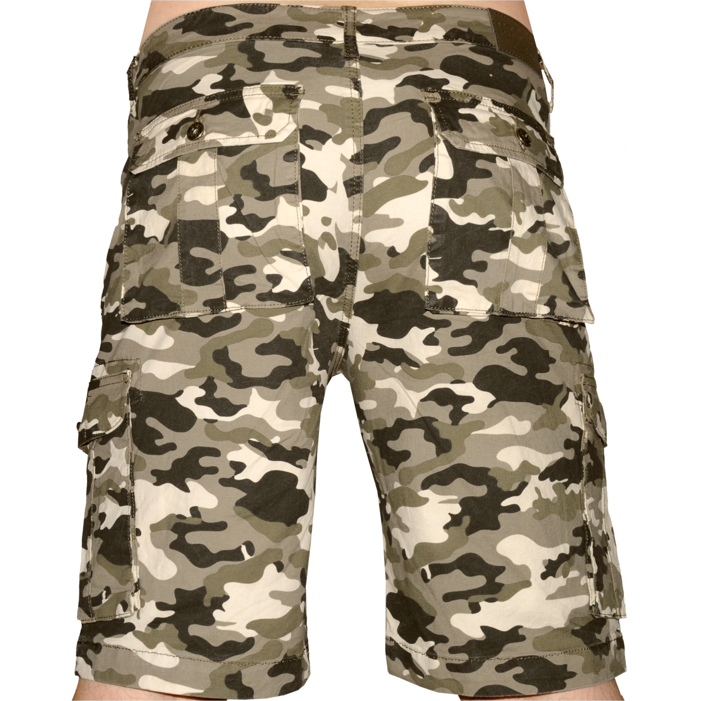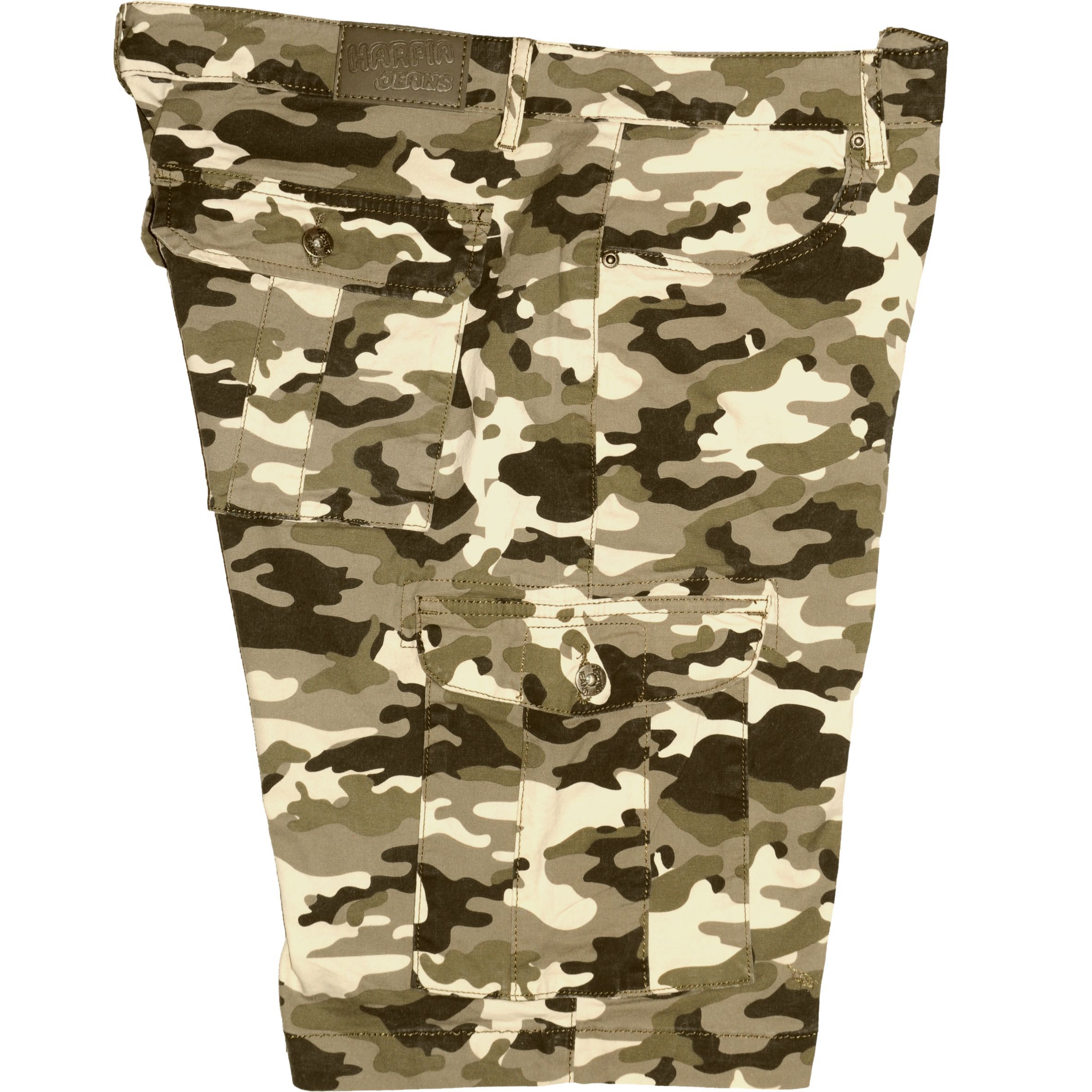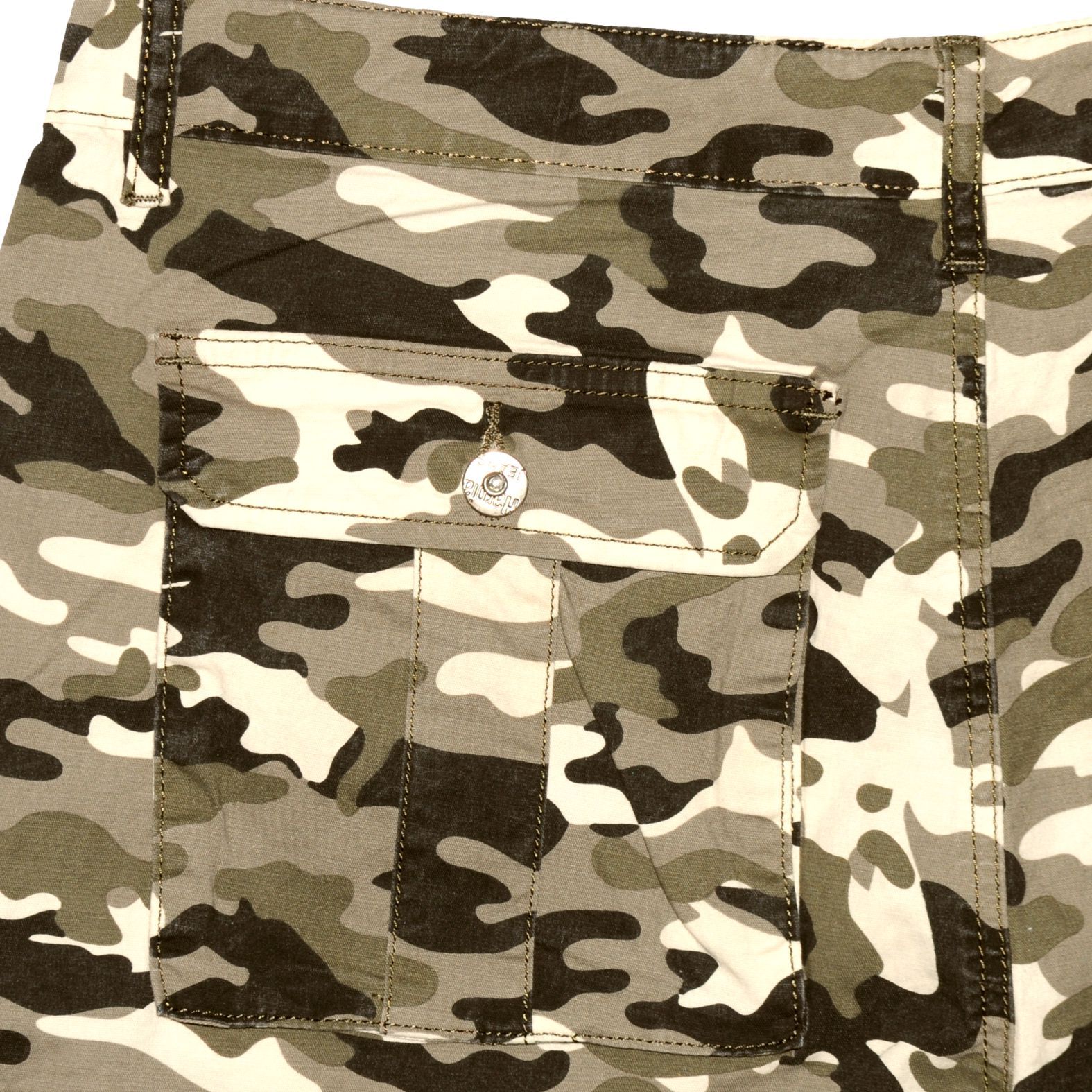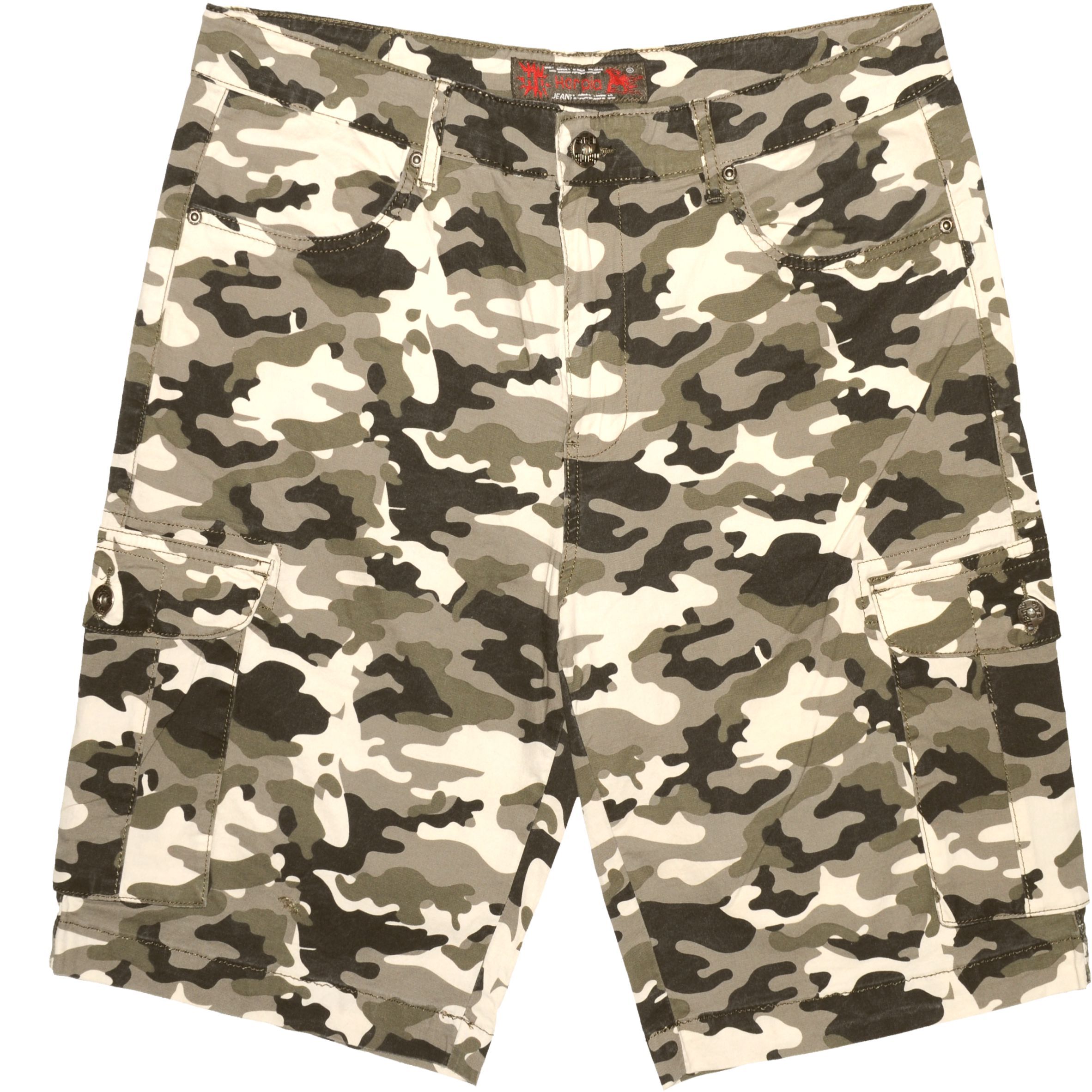 Terepszínű oldalzsebes férfi rövidnadrág. Masszív, rugalmas, kevert szálas alapanyaga puha és szellős érzetet biztosít. Bővített szárai nem gátolják a mozgást, emiatt egész nap kényelmes viselet marad. Hatzsebes modell, amelyekből a két oldalsók és a hátsók egy-egy gombbal, zsebfedővel zárható.