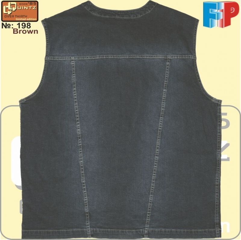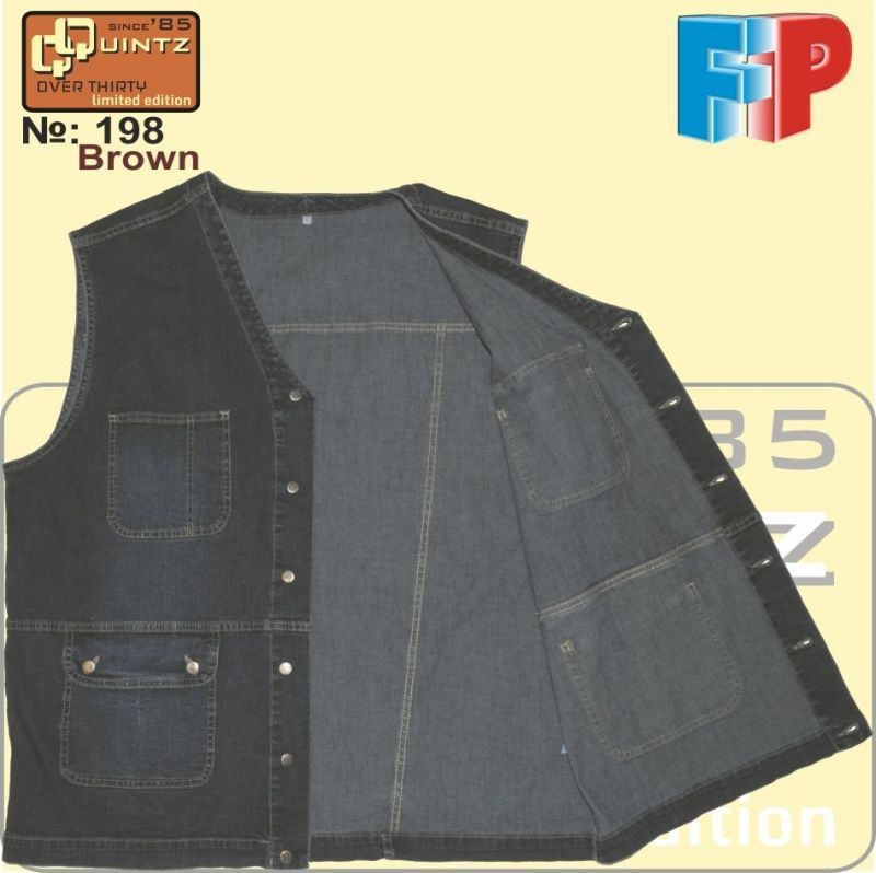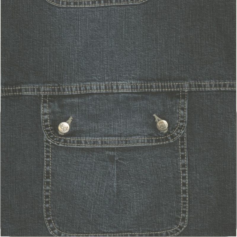 Sötétkék színű férfi mellény. Négyzsebes, amelyek mind a termék elején helyezkednek el. Három zsebfedővel, gombbal zárható, a jobb felső pedig ketté osztott. Kiváló minőségű, sztreccses, szál-koptatott alapanyaga 97% pamut, 3% elasztán. Gallér nélküli, gombbal záródó modell, amelyekből összesen 11 db található.